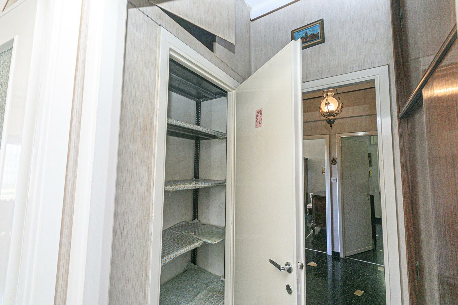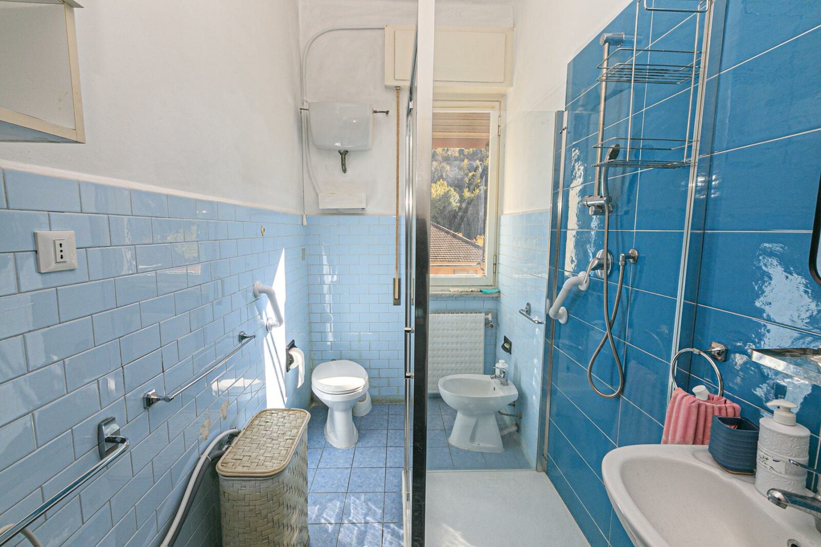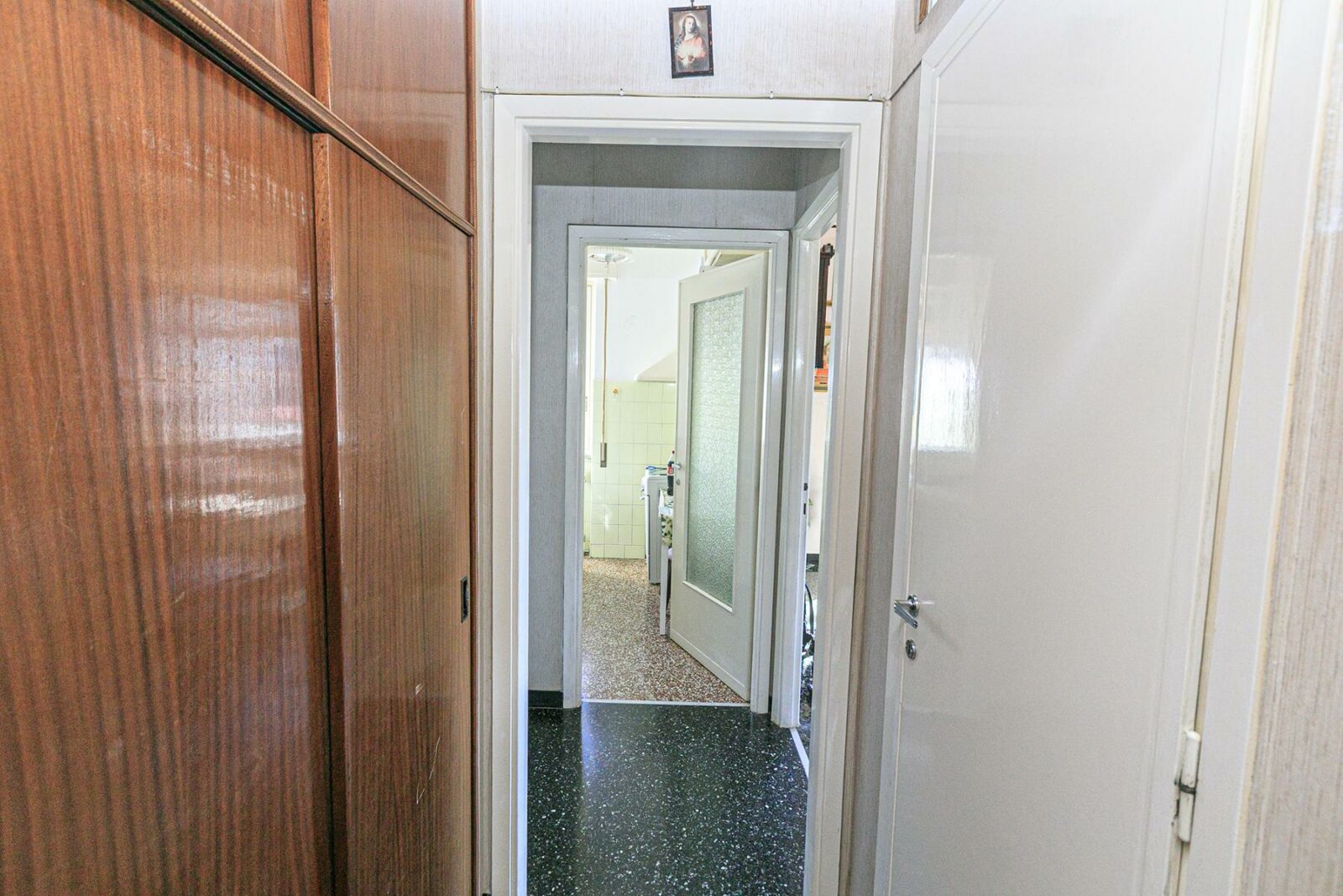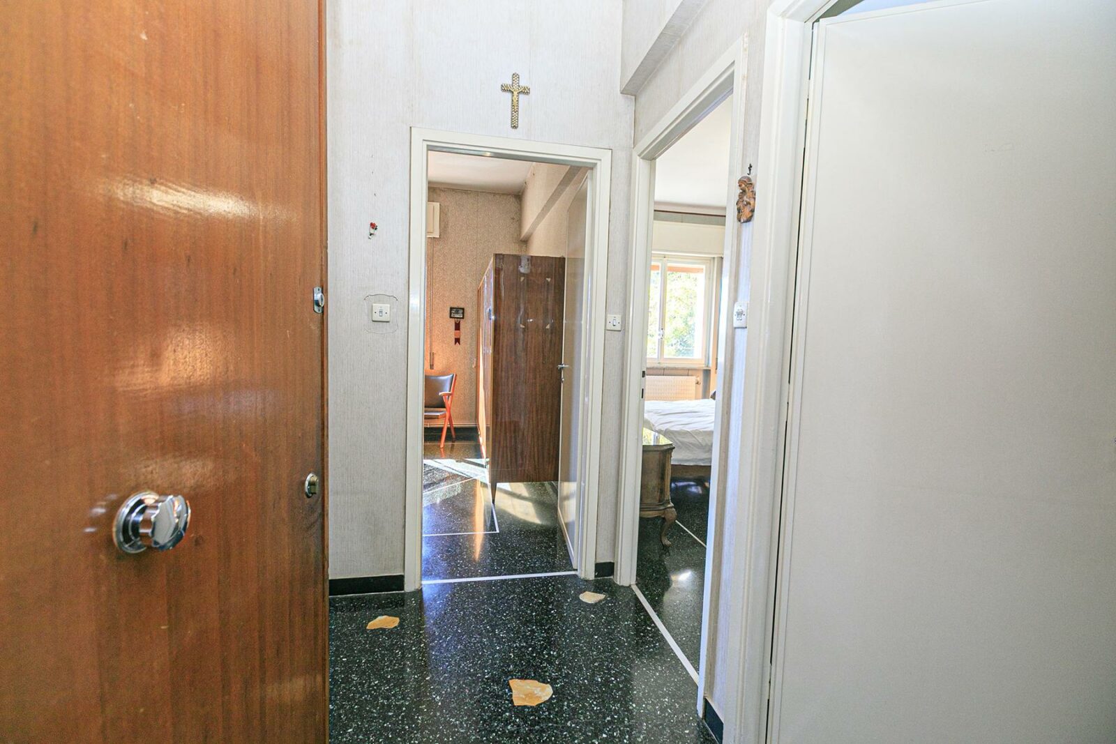L’esposizione esterna su tre lati garantisce grande luminosità e una piacevole vista aperta. Una lunga balconata angolare, accessibile dalla zona giorno, impreziosisce ulteriormente la proprietà.