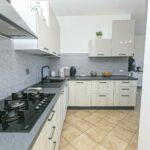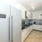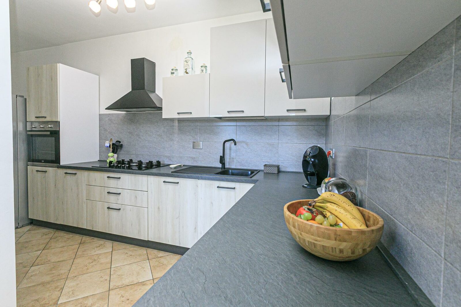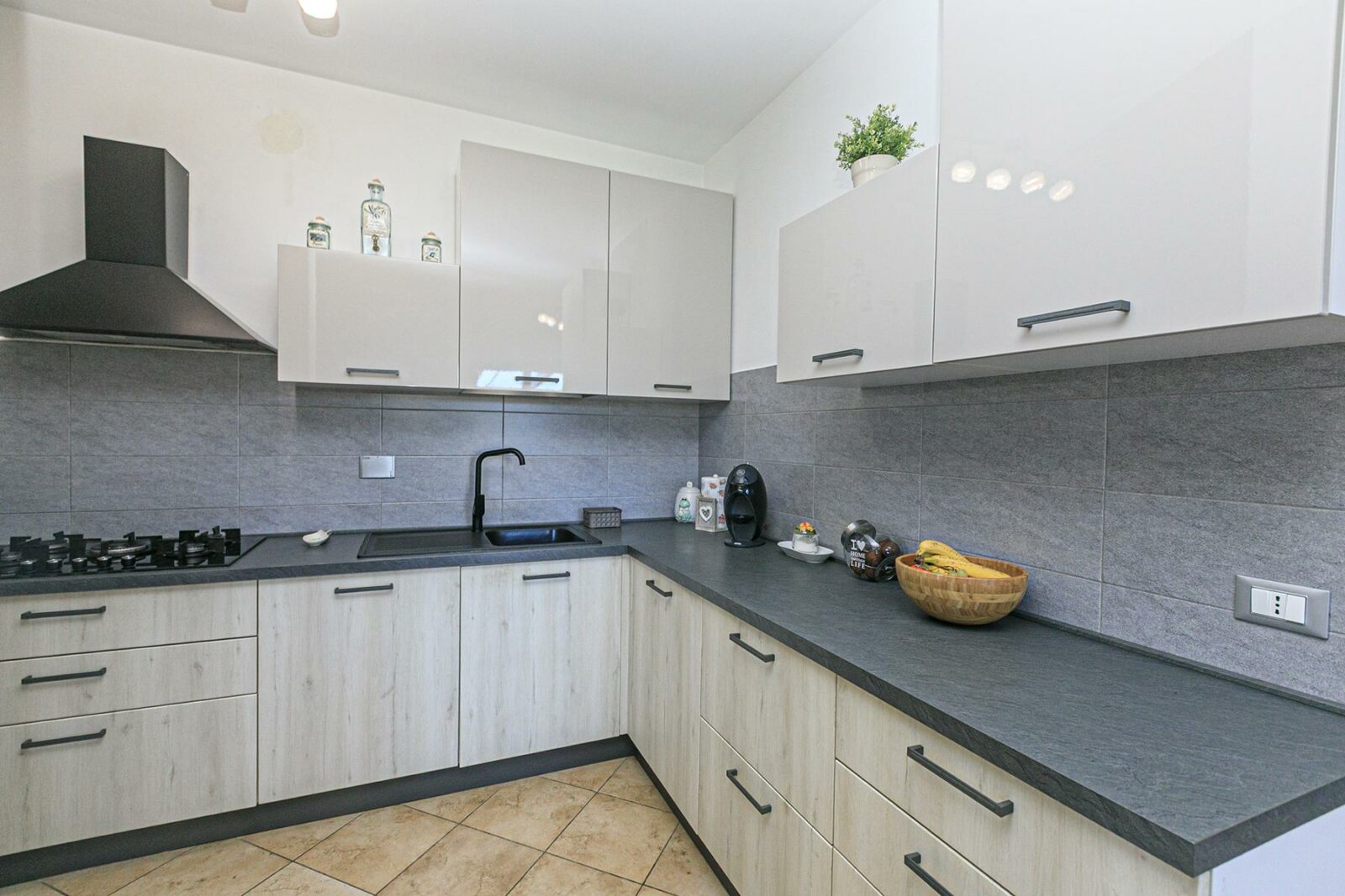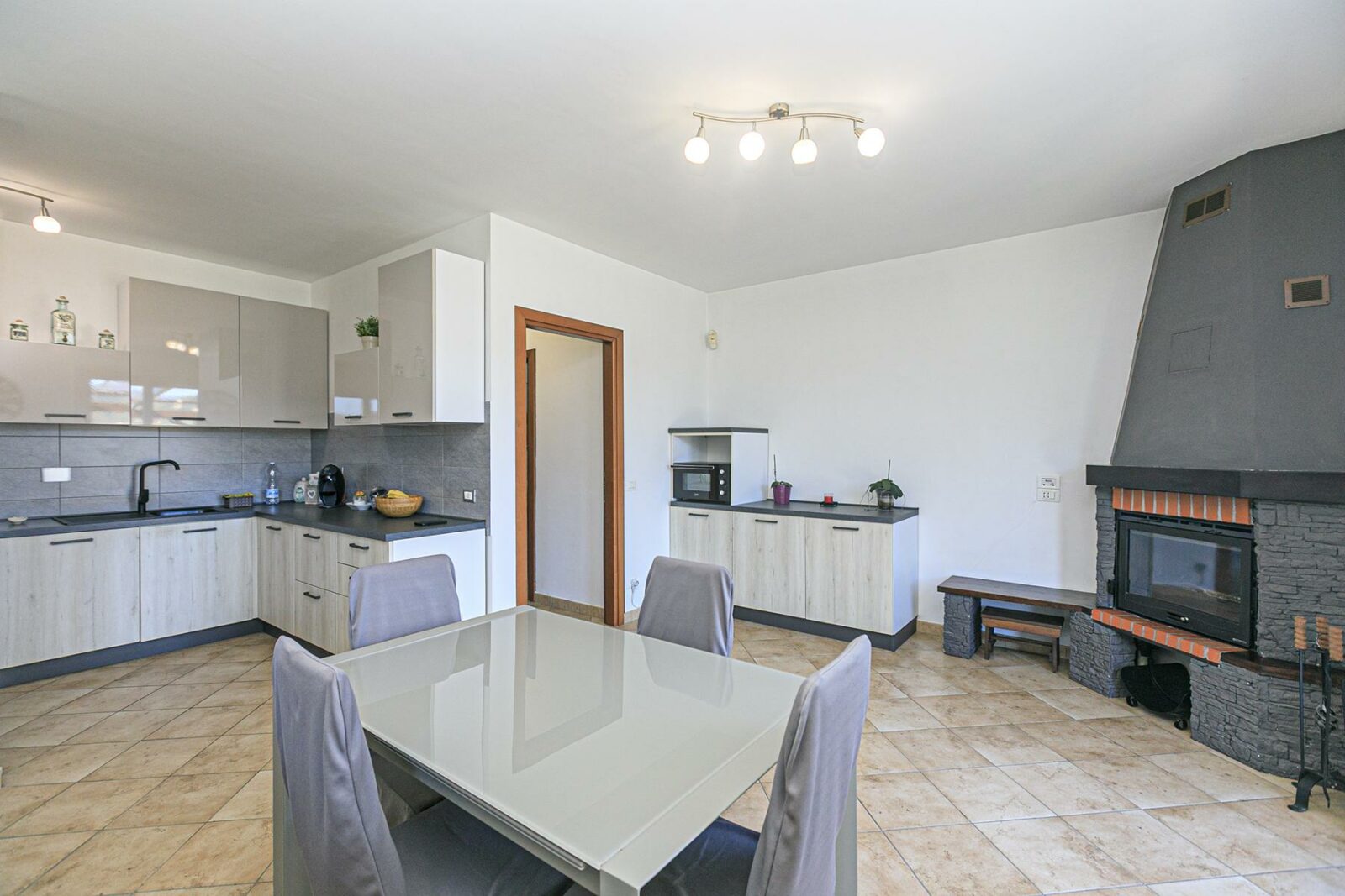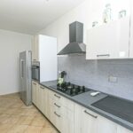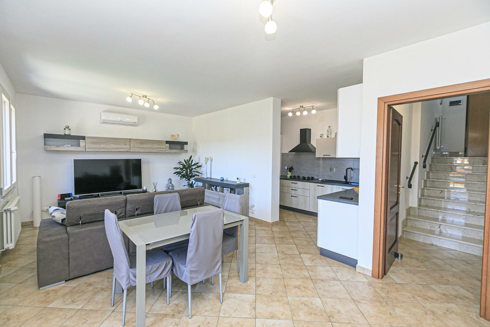 Al piano terra troviamo una grande e luminosa zona giorno con caminetto, un’ampia cucina (arredata con mobili di grande qualità, inclusi nel prezzo) e un bagno di servizio. Da qui si accede all’esterno, un vero e proprio valore aggiunto dell’immobile.
