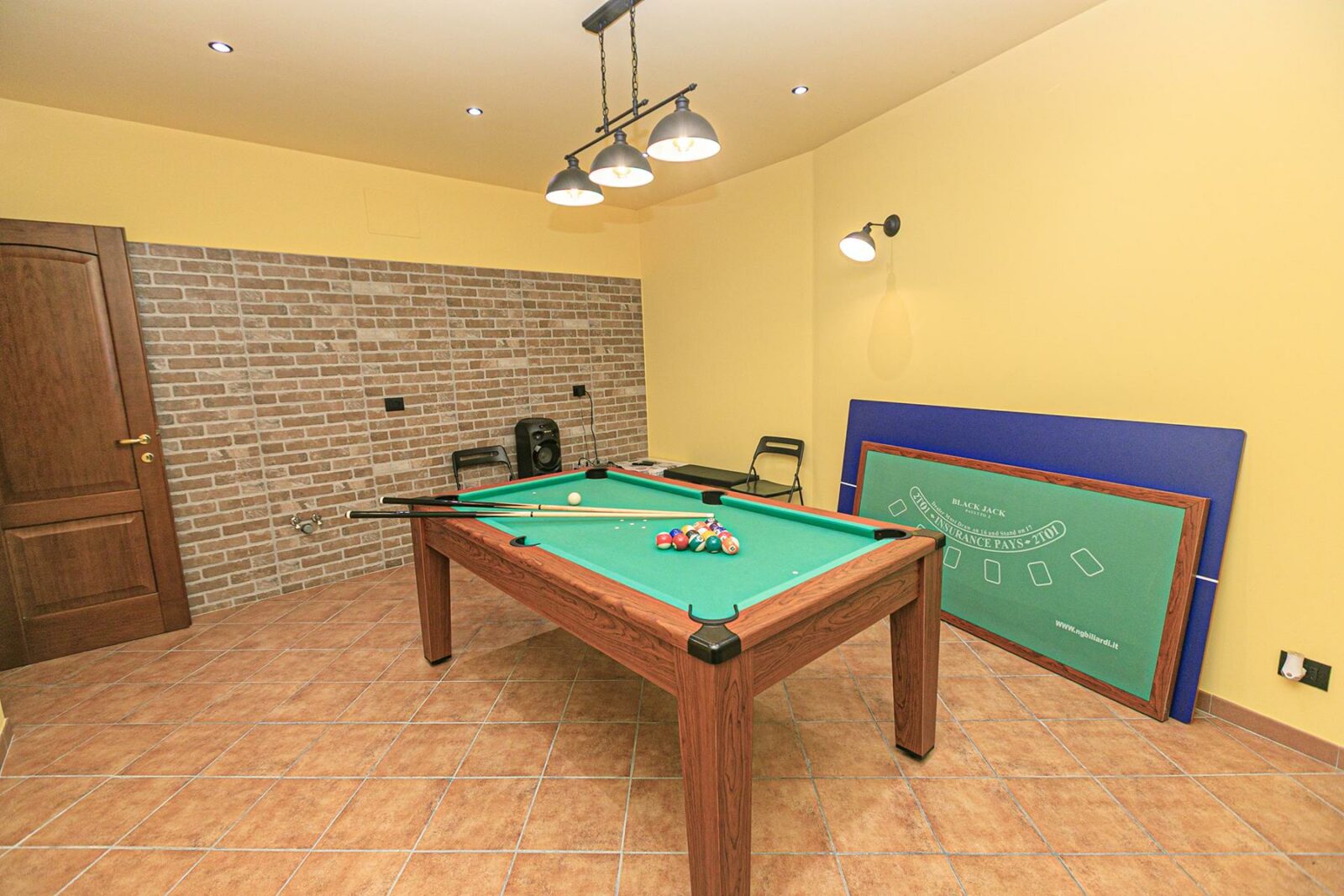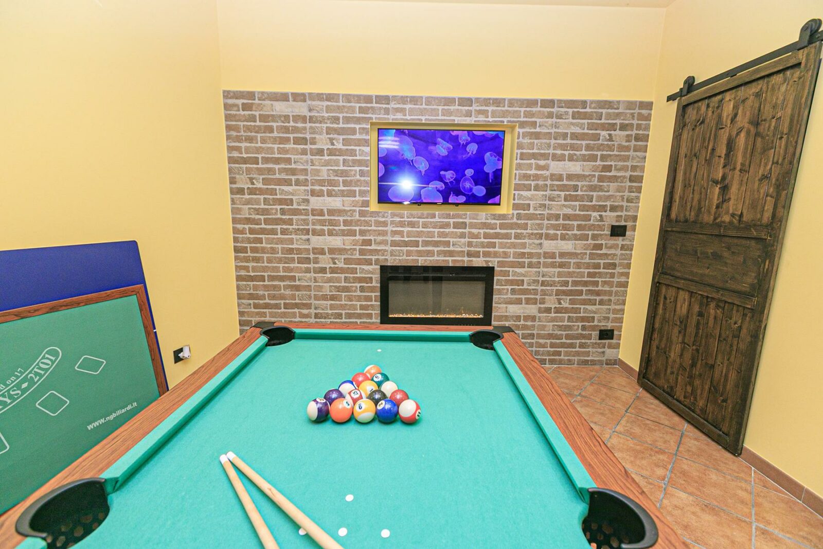 Per i mesi invernali, invece, è disponibile una tavernetta completamente rifinita, ideale per cene con amici o per una partita a biliardo.