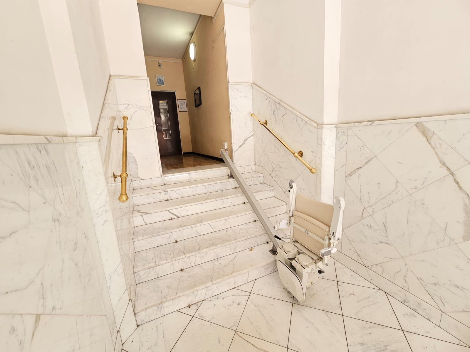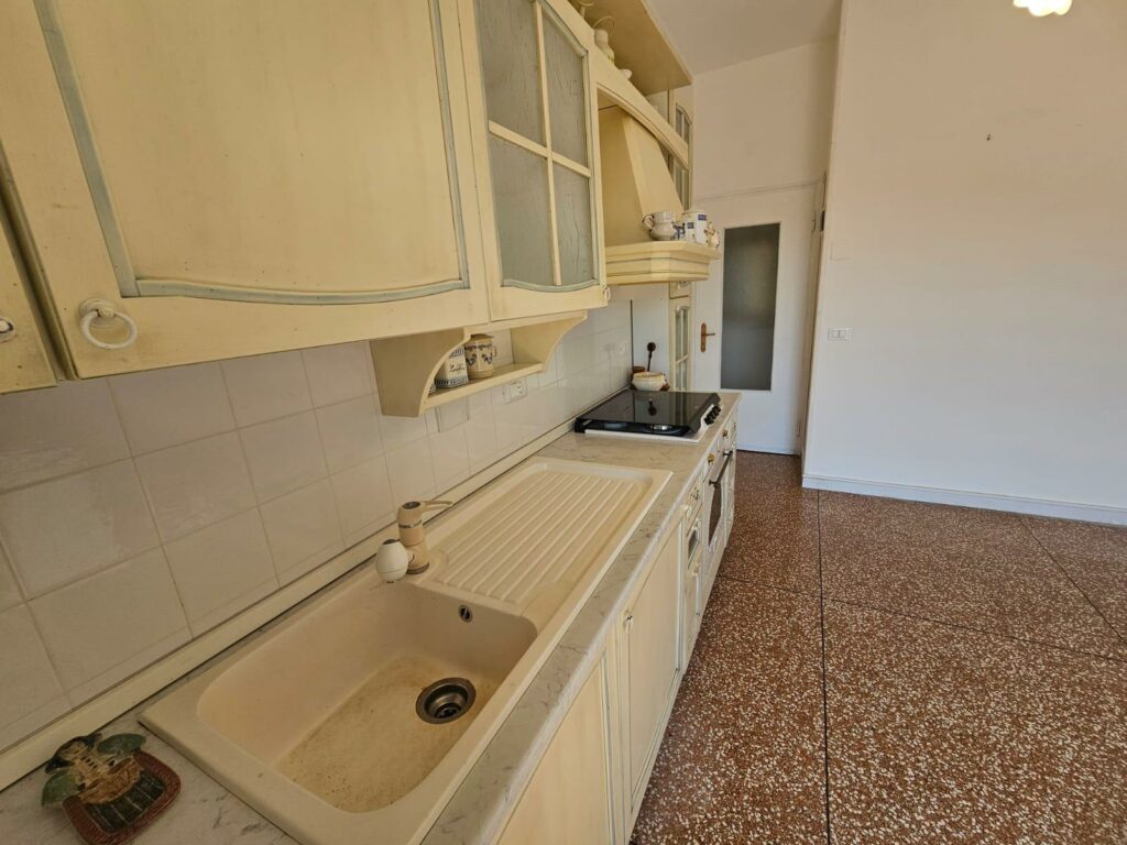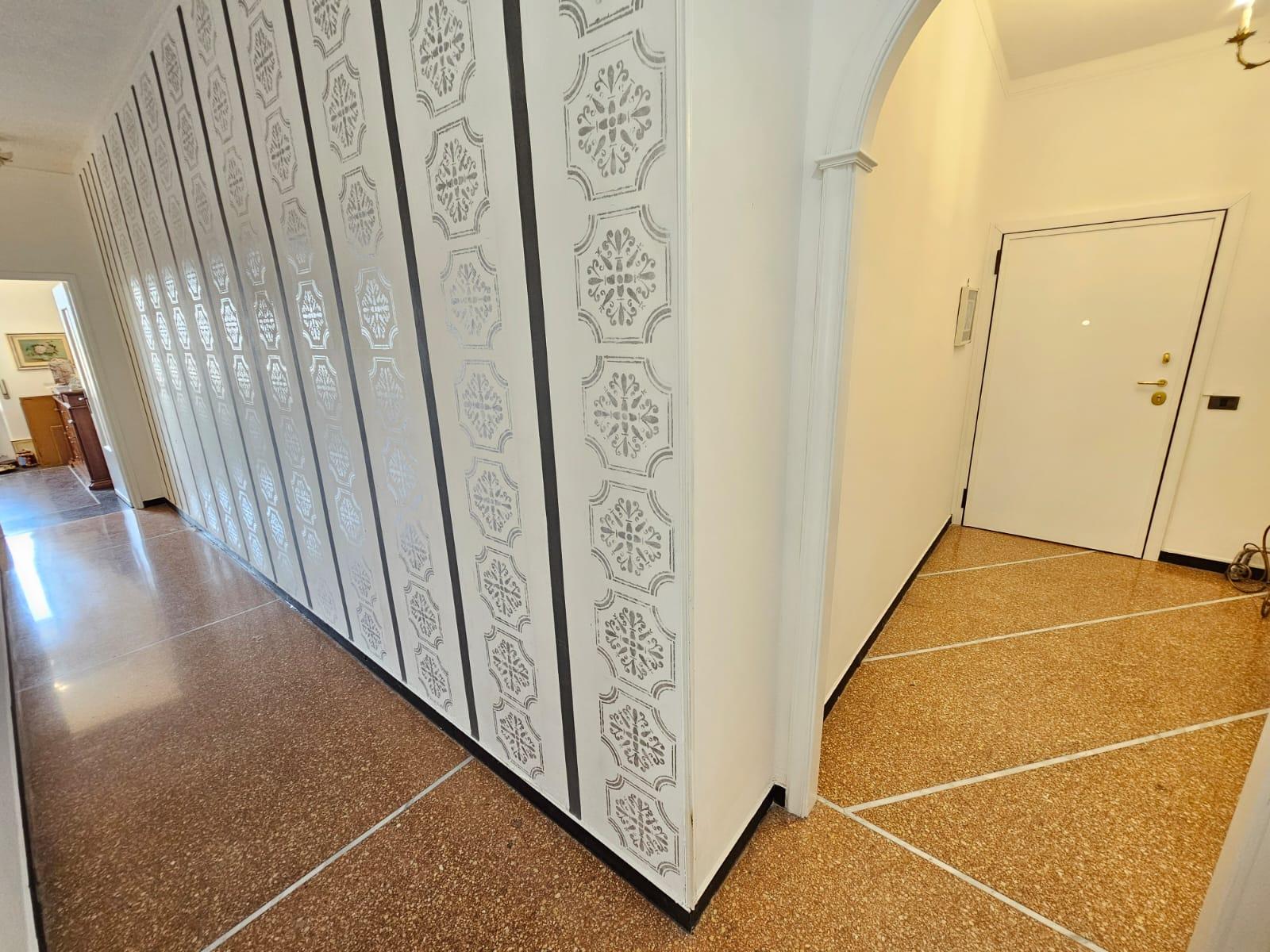 Lo stabile, edificato alla fine degli anni Sessanta, è servito da ascensore, privo di barriere architettoniche e dotato di una pratica area antistante destinata alla sosta breve per carico e scarico. L’appartamento si trova al sesto ed ultimo piano e gode di un’ampia vista panoramica, con doppia esposizione a sud e a ovest che assicura grande luminosità durante l’intera giornata.